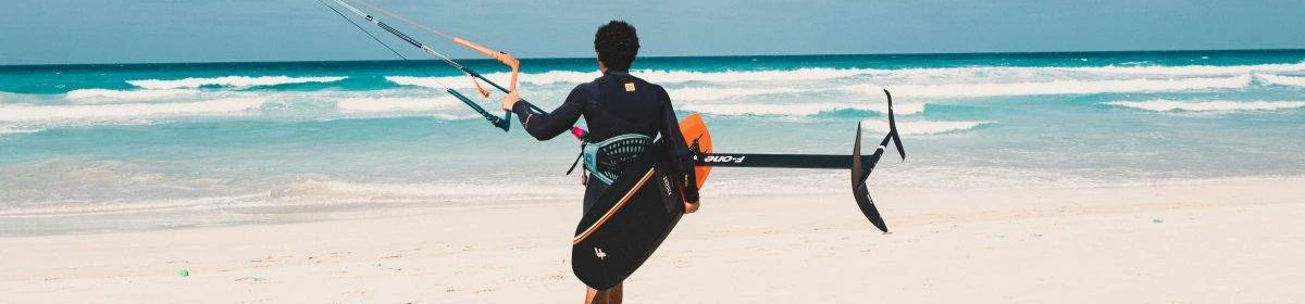 Hydrofoiling is possibly the most exciting and fastest-growing style of kitesurfing. A hydrofoil consists of a wing that is mounted onto a tall mast, which connects to the board. The wing provides lift which in turn makes the board lift completely out of the water for maximum efficiency, sometimes with the board floating up to one Meter above the surface!