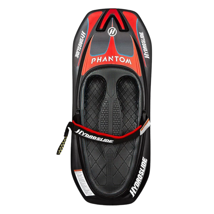The 2024 Hydroslide Phantom Kneeboard is a parabolic twin-tip, thin-profile kneeboards that gives the rider an experience hotter than the board’s graphics. Deep knee wells and a 3″ padded strap keep the rider in control and ready for the biggest maneuvers on the water, while the HydroHook is there to make learning effortless for new riders. Because of this functionality, the Hydroslide Phantom Kneeboard is a suitable choice for anyone on the boat.