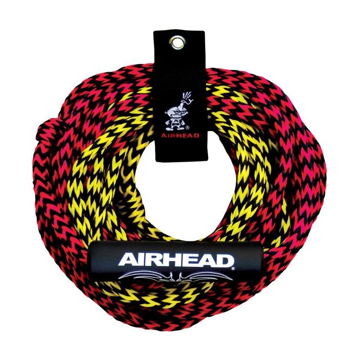 The Airhead 2 Section 2 Riders Tube Rope has 2 sections, giving you the option to tow the tube either 50 or 60 feet behind the boat depending on wake and water conditions. This rope is the best money for value towline on the market , Caters form 1-2 Riders , has minimal Stretch , is safe and Durable