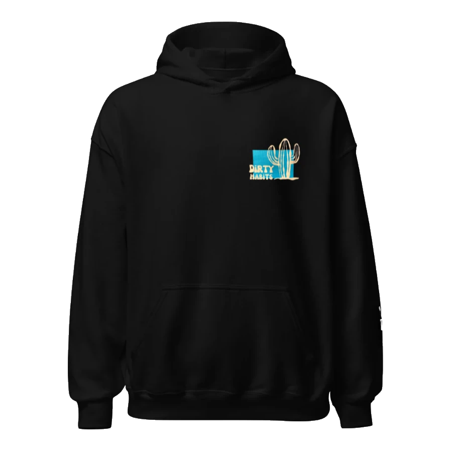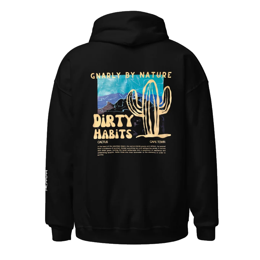The Dirty Habits Gnarly Oversize Hoodie represents all the elements that we chase to set our souls on fire. Screen printed on the back and front pocket onto black fabric.