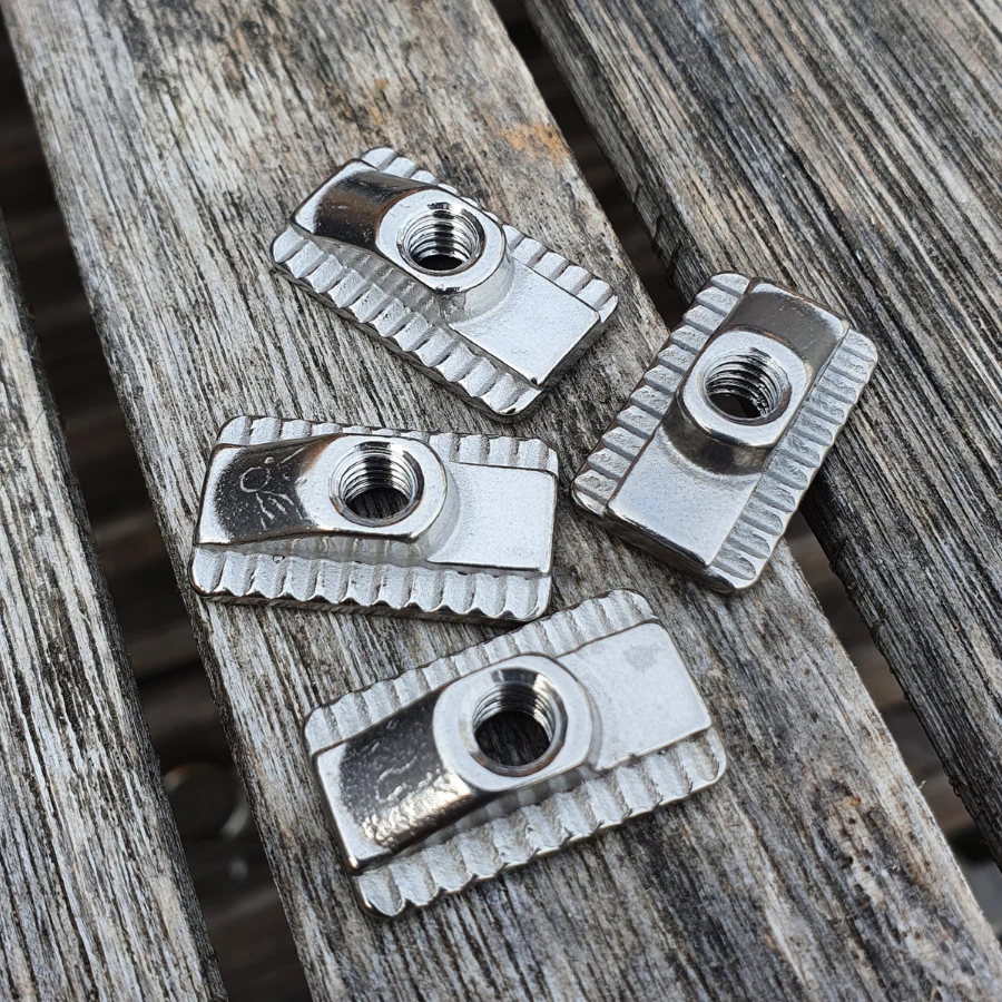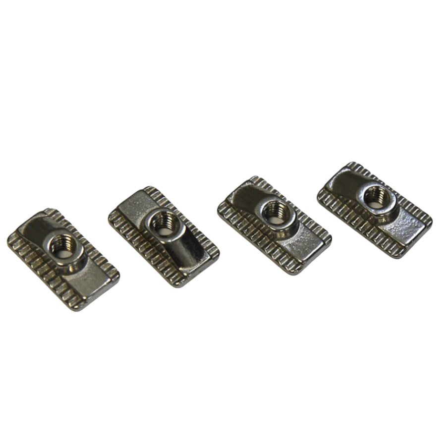 Four high-grade stainless steel F-One Hydrofoil T-Nut Set with M6 screw thread will secure your foil to the board without stripping. Stainless Steel Corrosion resistant T-nuts, allow tuning of your setup as you slide them up or down the twin track rack mount.