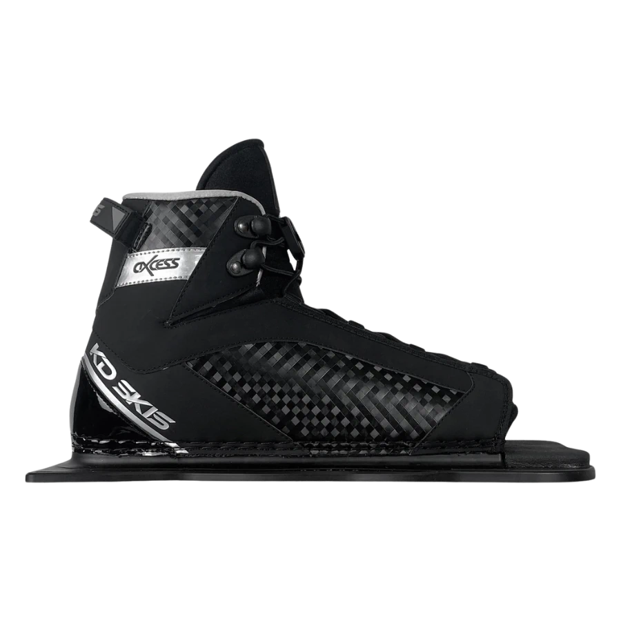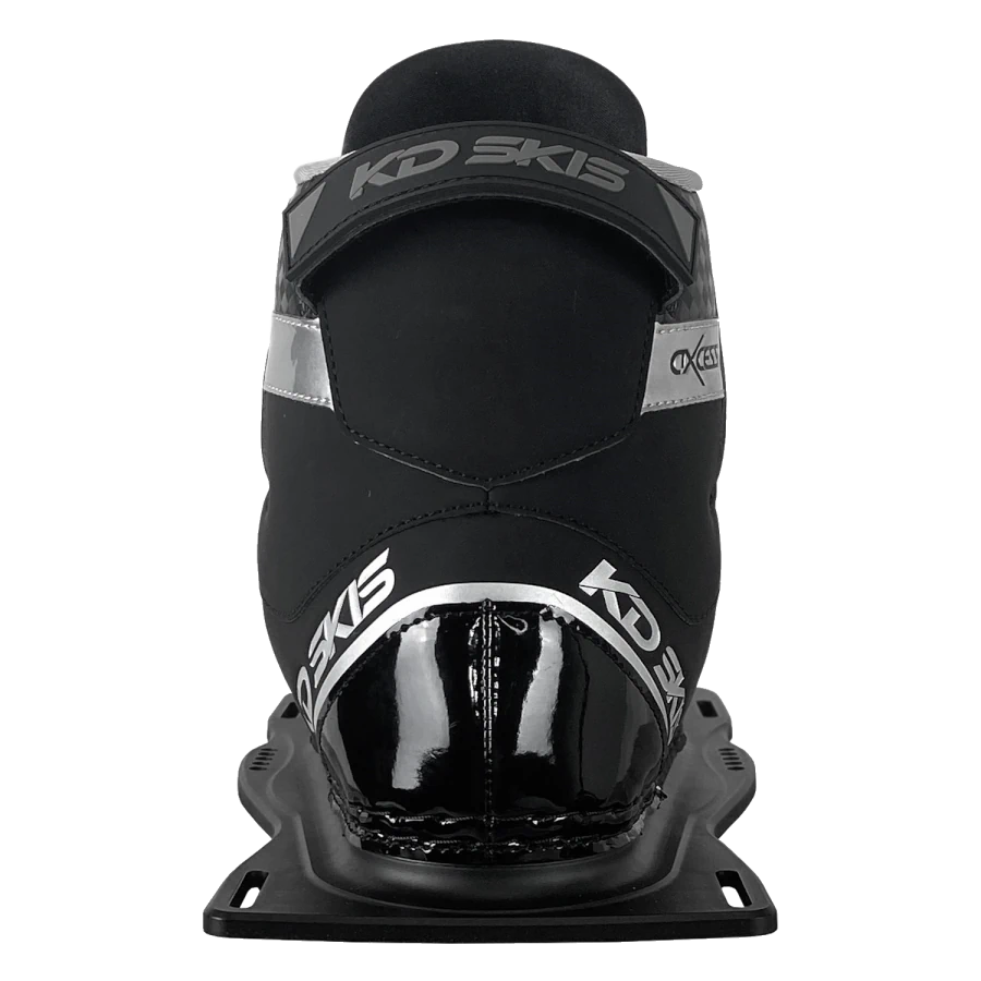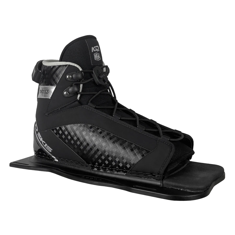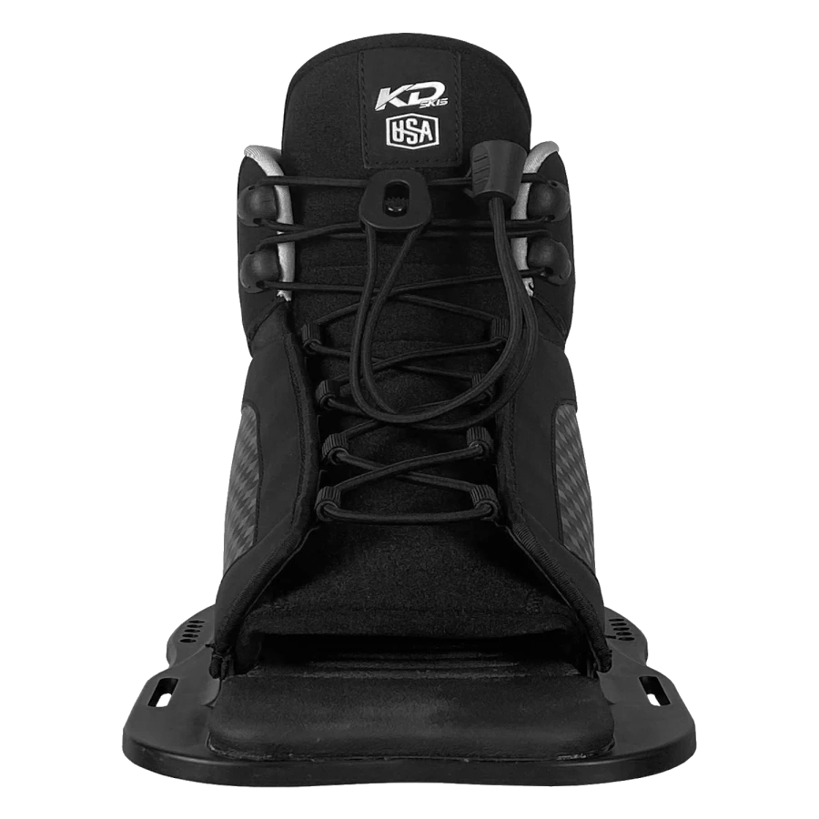 The KD Axcess Front Slalom Binding  has been updated for this season and has become the ultimate no-nonsense binding for entry level to intermediate level slalom waterskiing that people have been asking for. The top cuff has been lowered to suit recreational skiers and utilizing an innovative floating toe design to maximise the size range that can fit into its single size binding. The fit is controlled by the skier with a single front lace and ultra soft PU inner both conforms to the foot and opens easily for speedy entries and exits.