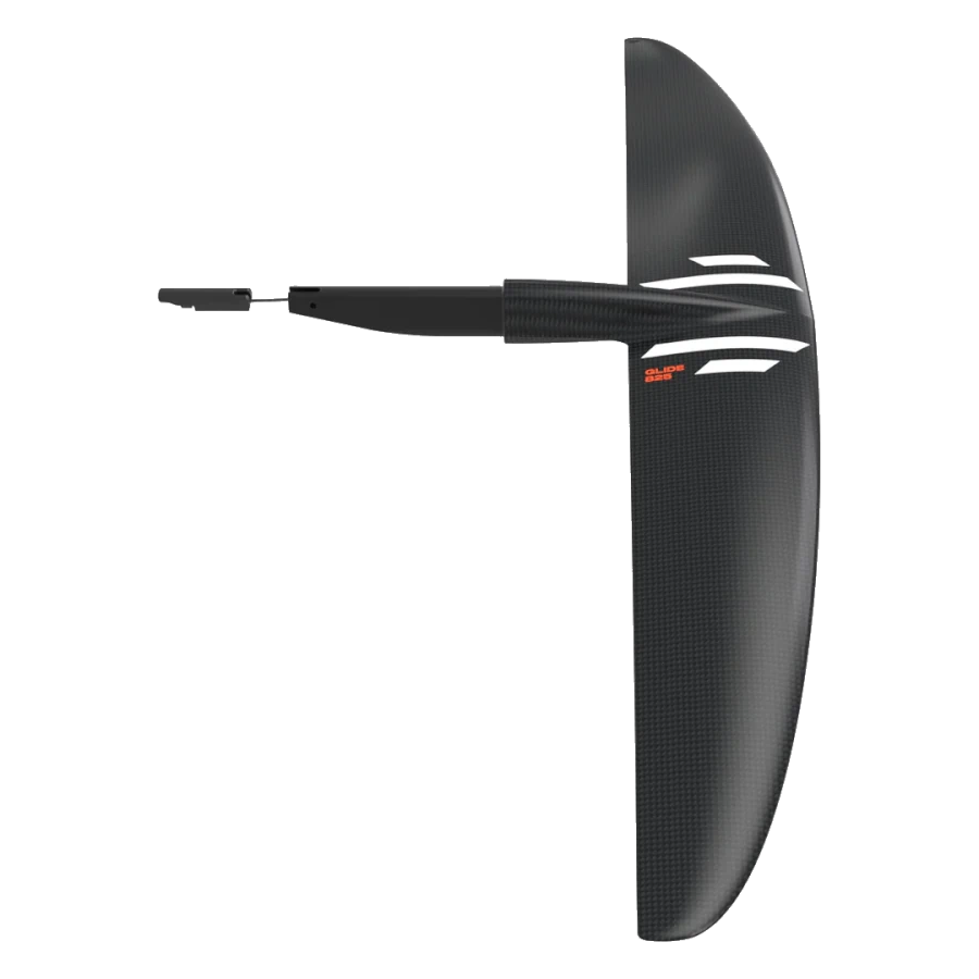 The One-Lock Glide Front Wing is the most efficient front wing in the One-Lock line. Through utilizing a medium-high aspect ratio, we found the most forgiving and playful front wing shape yet. The medium high camber profile excels in low end lift, allowing smaller wings to get up at slower speeds. When accelerating to faster speeds, the wing tip twist prevents the foil from gaining lift. This means there is no increase in front foot pressure when pushing the foil to the extremes.