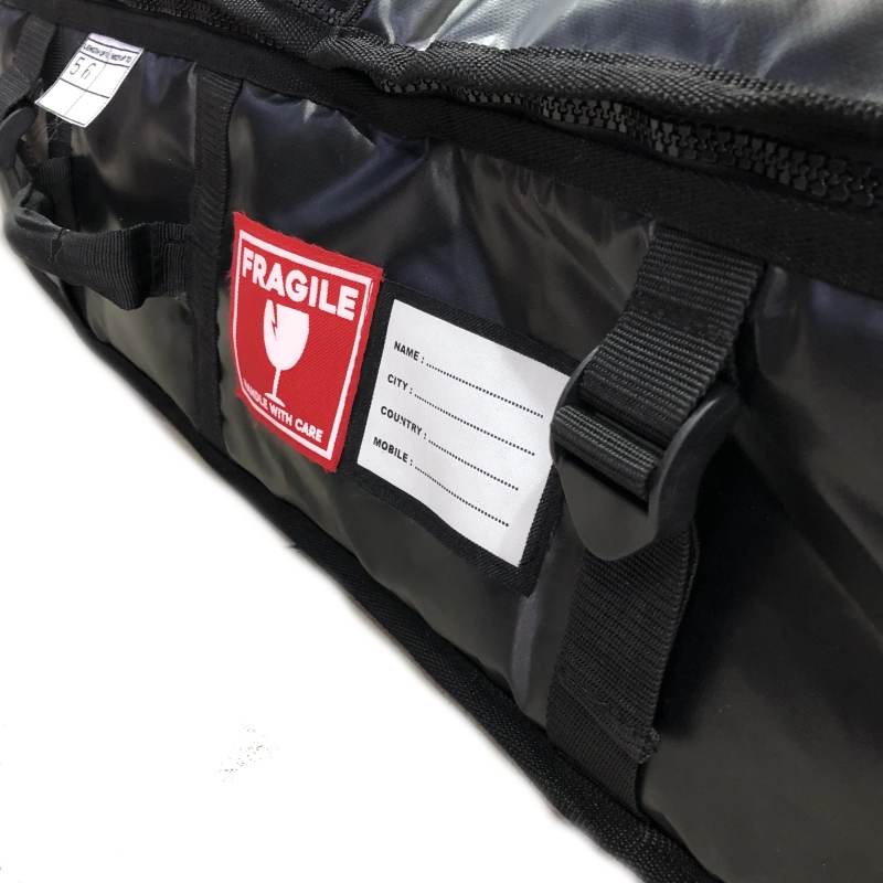 A permanent fragile sticker sewn into the heart of the travel bag to ensure those cargo boys are aware of the fragile goods lying within.